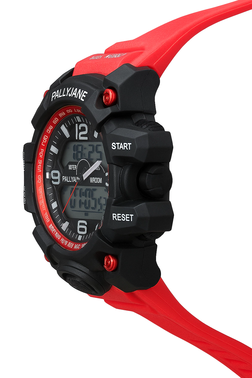 Inspirado no estilo esportivo tático, o Relógio Masculino Digital Pallyjane – Edição Red Sport é perfeito para quem busca resistência, visual imponente e funções completas para o dia a dia.